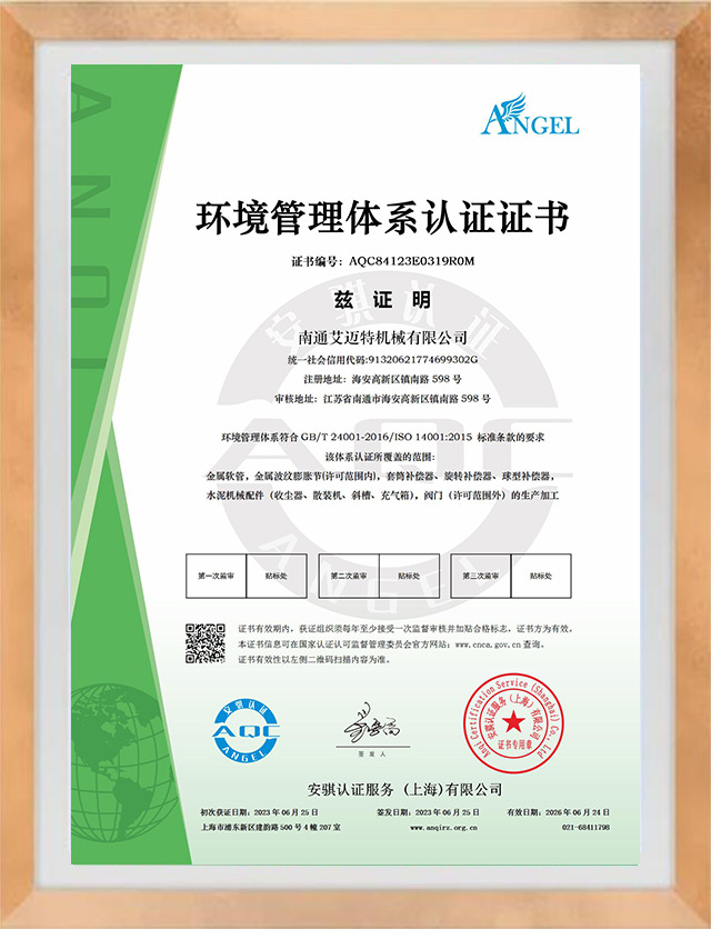 環(huán)境管理體系認證證書